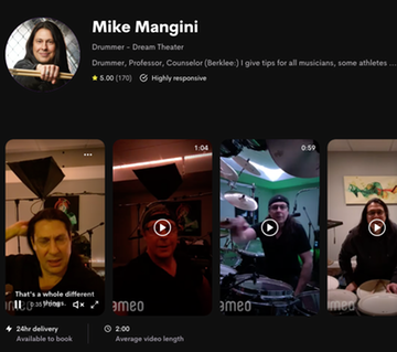 Mike’s Cameo service has gone beyond birthday wishes. People have caught on that they can get problem solving advice here. Mike’s many years of studying human behavior and management structures, as well as as his being the student counselor for the Berklee College of Music Percussion Department and thus, have led to his offering that service via Cameo.